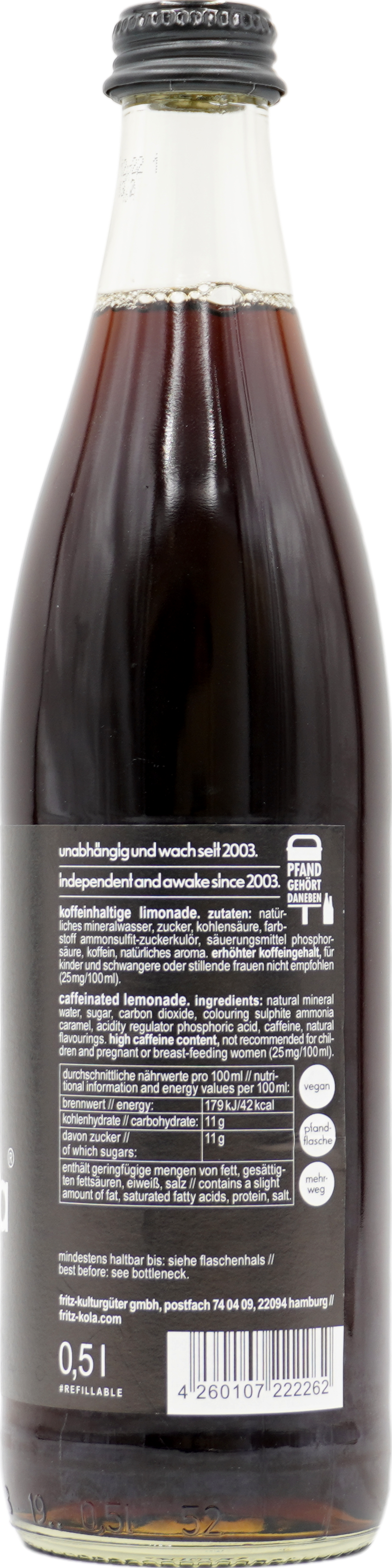 EINE DER AUFGEWECKTESTEN KOLAS DER WELT (25MG NATÜRLICHES KOFFEIN/100ML). SIE ENTHÄLT ECHTES KOLANUSSEXTRAKT UND NATÜRLICHES KOFFEIN - DER UNVERWECHSELBARE WACHMACHER.